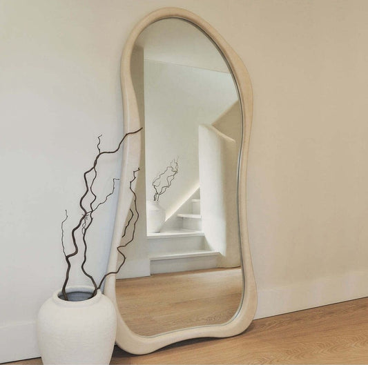 Regular price $1,800.00 USDRegular priceUnit price / per$2,270.00 USDSale price $1,800.00 USDOrganic Irregular Full Length Mirror – Thick Frame Design Transform your living space with this modern full length mirror, featuring a bold, thick frame and an organic irregular silhouette. Lean it casually against the wall for a contemporary look, or hang it securely using the built-in back hook. Its sculptural design makes it both a functional mirror and a statement art piece. Perfect for bedrooms, living rooms, hallways, or dressing Read More...Sale -