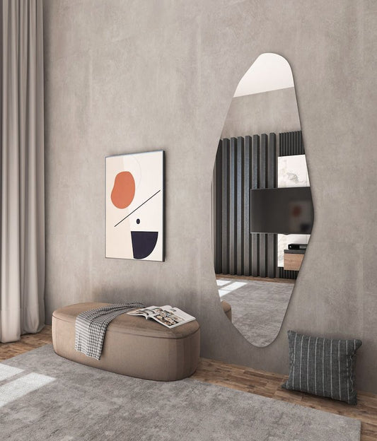 Make a bold design statement with our collection of asymmetrical floor mirrors, where contemporary artistry meets everyday functionality. Defined by fluid lines and irregular shapes, these mirrors bring personality and visual rhythm to any room. Their unique silhouettes break away from traditional symmetry, creating a striking focal point that reflects both light and individuality. Ideal for bedrooms, dressing spaces, or living rooms, an asymmetrical floor mirror adds dimension and modern elegance to your interior.