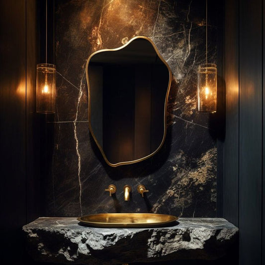 The design possibilities for an asymmetrical mirror are wide and varied. Frameless models with smooth, organic edges create a minimalist and calming atmosphere, while versions framed in brass, matte black, or natural wood add structure and contrast. Some designs resemble freeform sculptures, while others lean toward geometric abstraction, allowing you to select the look that best complements your décor. Each mirror provides a balance of utility and style, offering flexibility to match contemporary, eclectic, or even transitional spaces.