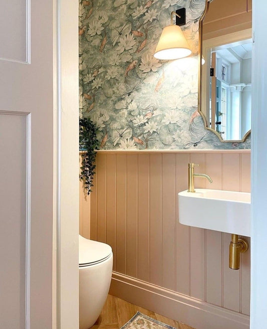 Small Powder Rooms: Round mirrors create softness and visually open up narrow areas.