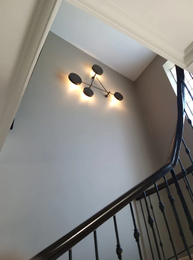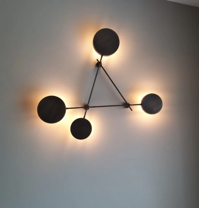 The "A" Sconce, designed by the workshop as a decorative object and lighting fixture for large wall areas, features four different light sources. With an E-14 socket area, the product emits light in an indirect, diffused manner.