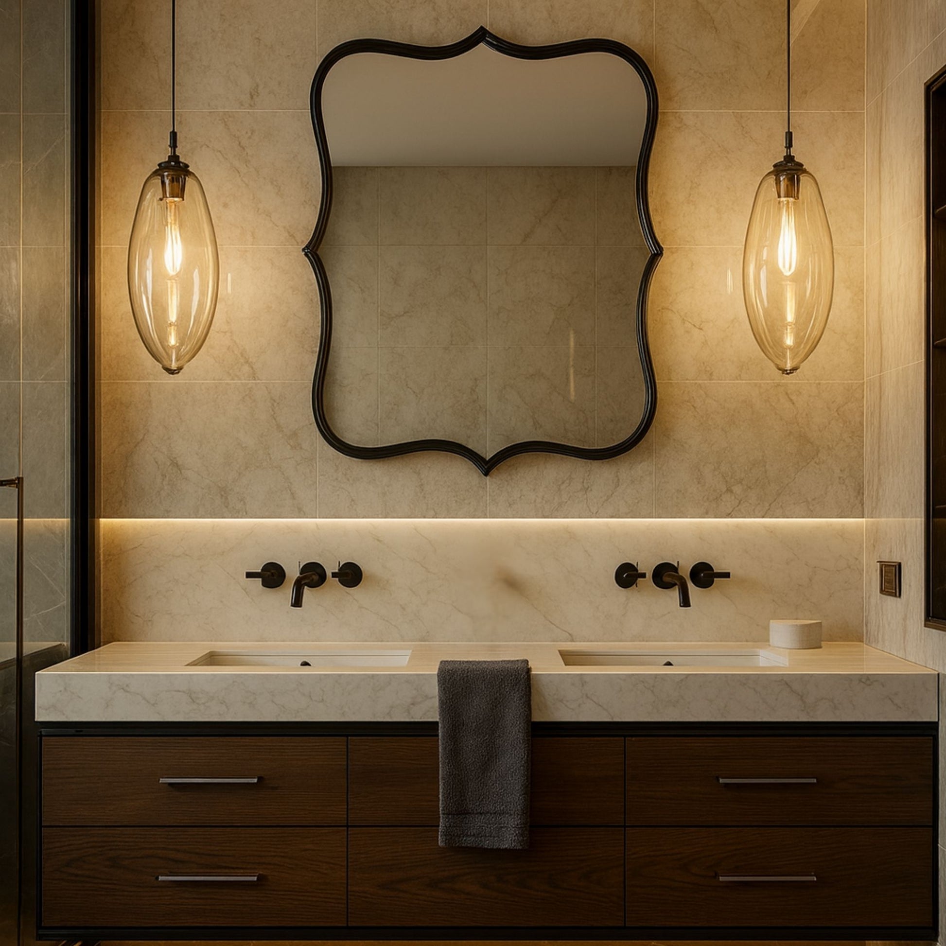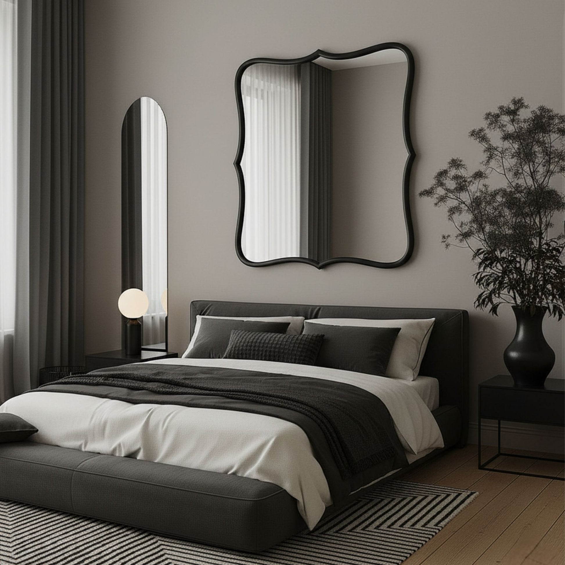 Asymmetrical and Unique Design: This mirror features an asymmetrical design with a slightly curved edge, giving it a modern and stylish look. The irregular shape and unique textures add depth and character to any room.