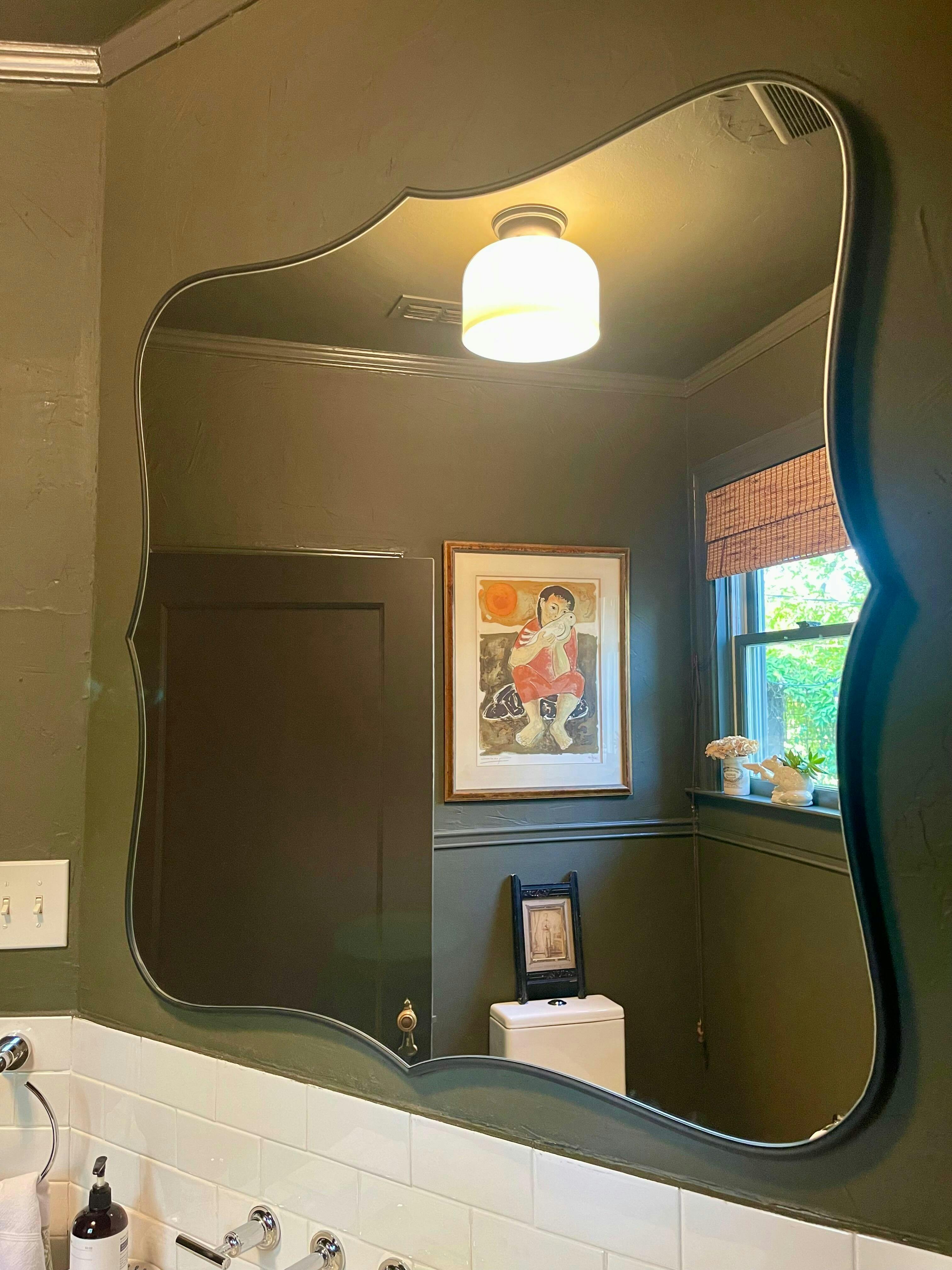 This unique and stylish mirror is a great choice for any room in your home, Bathroom mirror , bedroom mirror , irregular mirror ,unique mirror, asymmetrical mirror. It is made of high-quality materials and is designed to be both stylish and functional.