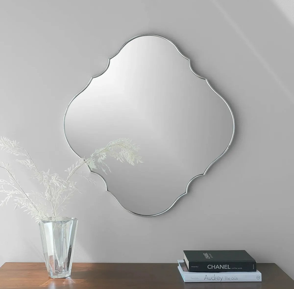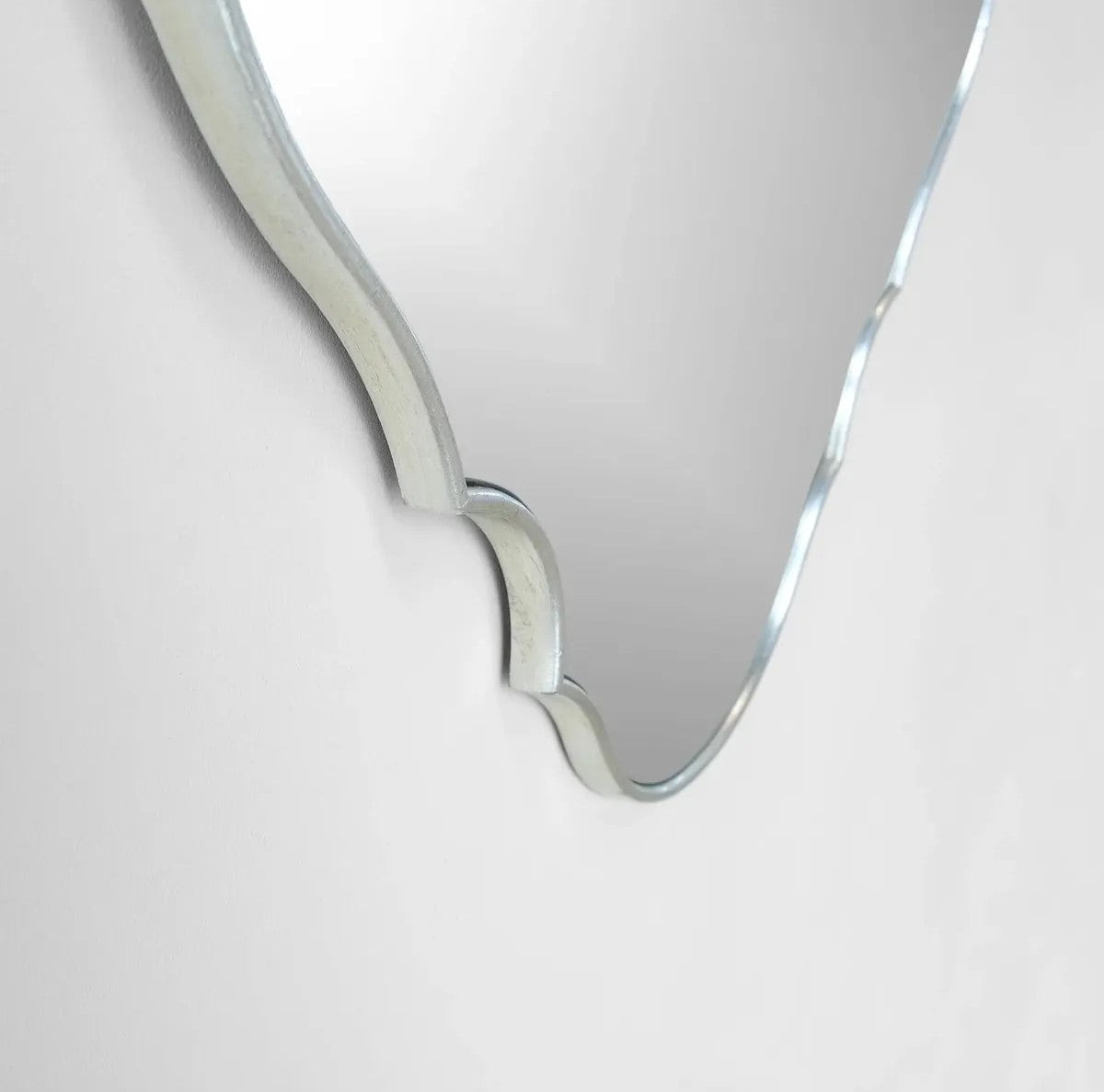 Asymmetrical and Unique Design: This mirror features an asymmetrical design with a slightly curved edge, giving it a modern and stylish look. The irregular shape and unique textures add depth and character to any room.