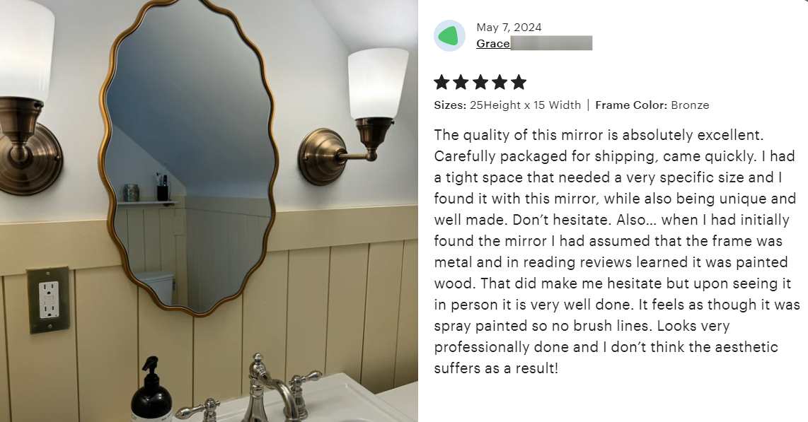 100% Handmade and High-Quality Glass: This mirror is made of high-quality glass and is carefully crafted by hand.