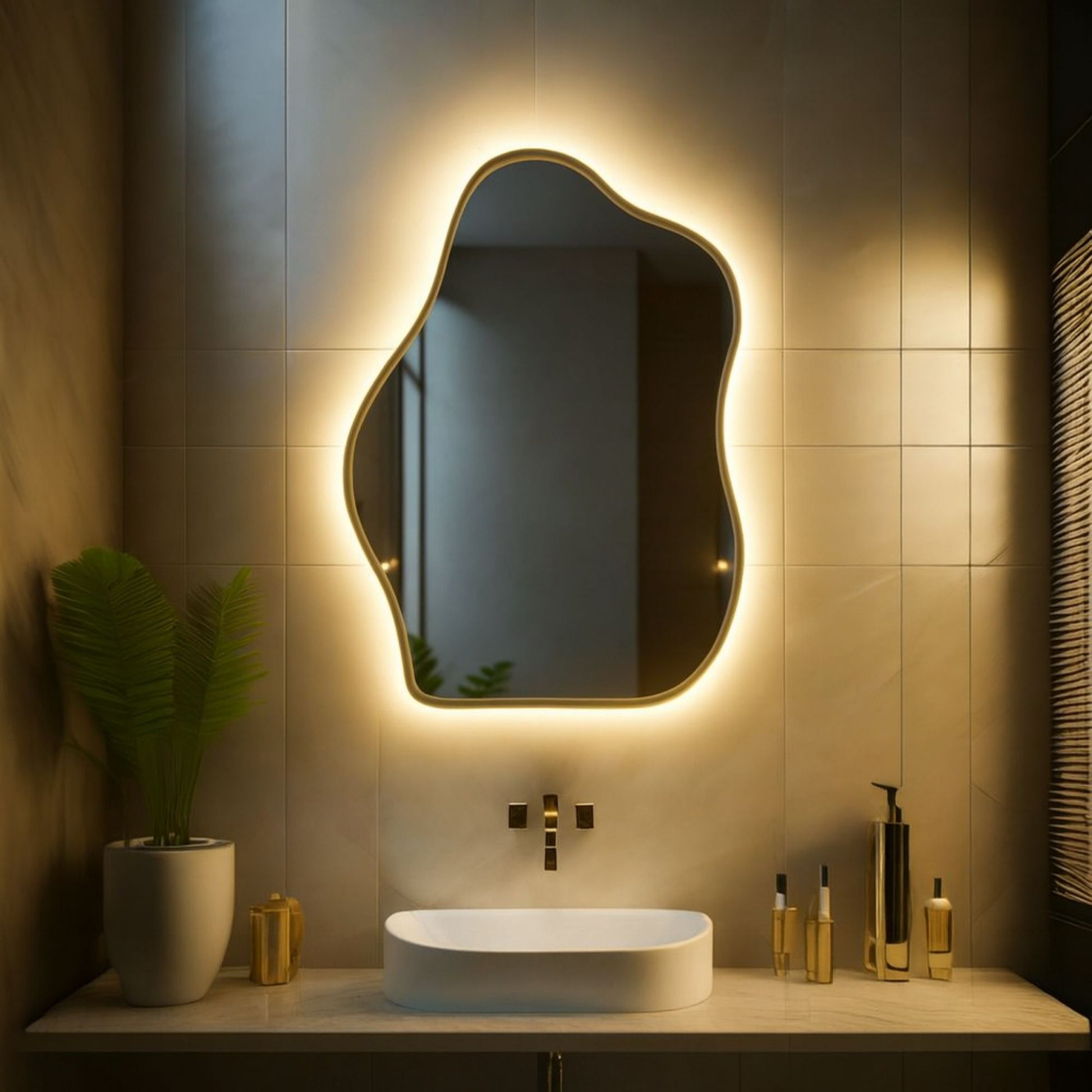 Asymmetrical and Unique Design: This mirror features an asymmetrical design with a slightly curved edge, giving it a modern and stylish look. The irregular shape and unique textures add depth and character to any room.
