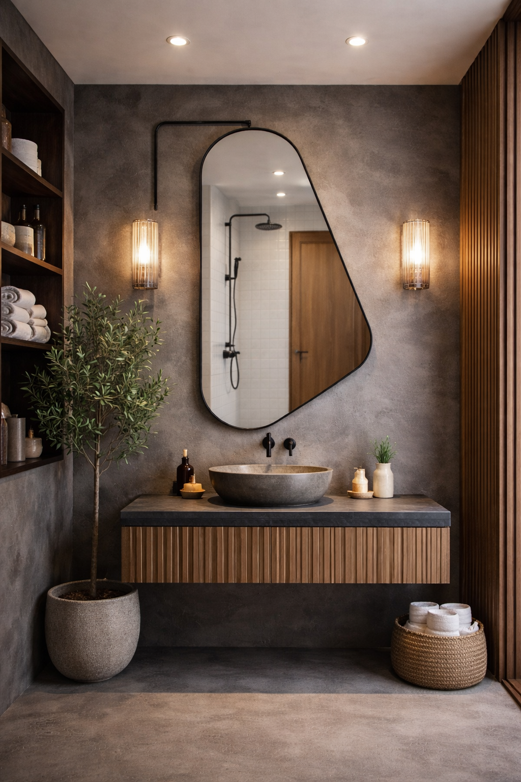 Asymmetrical and Unique Design: This mirror features an asymmetrical design with a slightly curved edge, giving it a modern and stylish look. The irregular shape and unique textures add depth and character to any room.