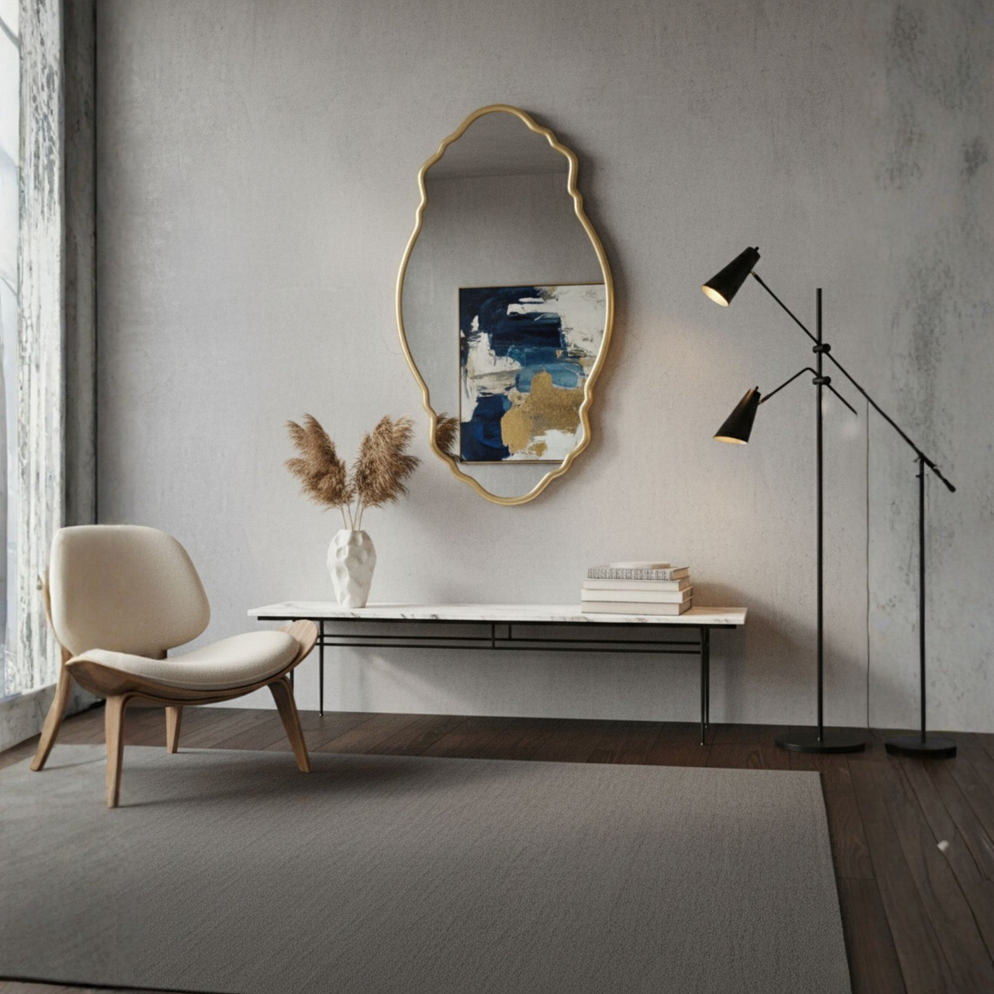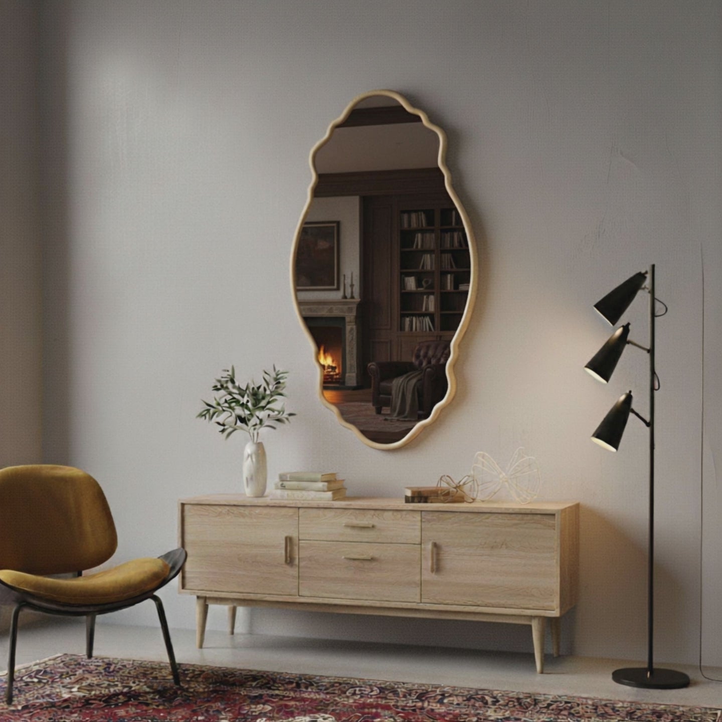 Asymmetrical and Unique Design: This mirror features an asymmetrical design with a slightly curved edge, giving it a modern and stylish look. The irregular shape and unique textures add depth and character to any room.