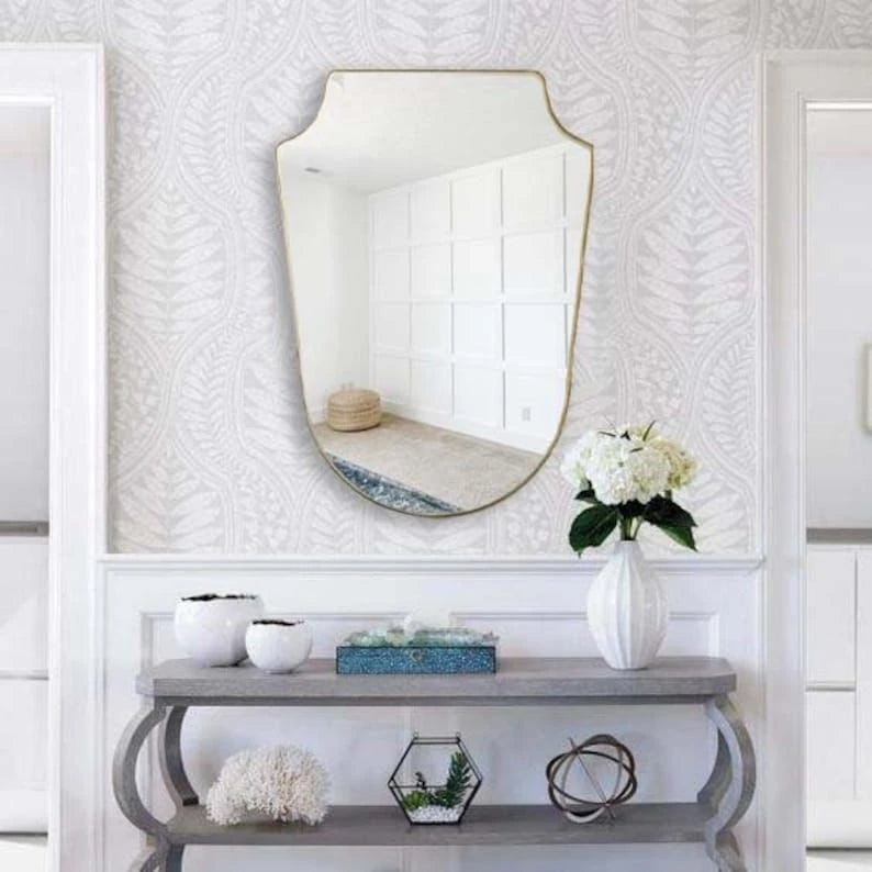 Asymmetrical and Unique Design: This mirror features an asymmetrical design with a slightly curved edge, giving it a modern and stylish look. The irregular shape and unique textures add depth and character to any room.