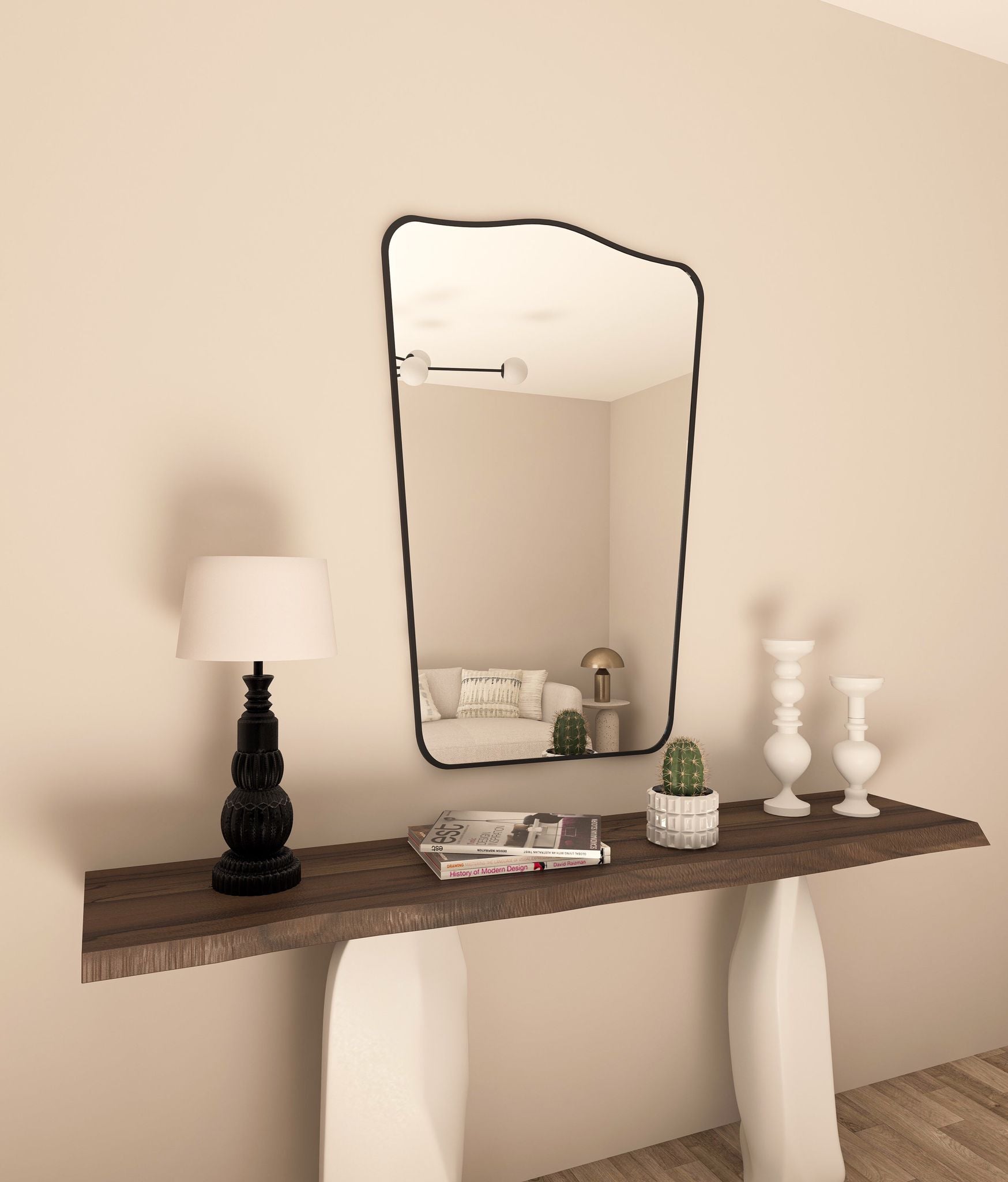 Asymmetrical and Unique Design: This mirror features an asymmetrical design with a slightly curved edge, giving it a modern and stylish look. The irregular shape and unique textures add depth and character to any room.
