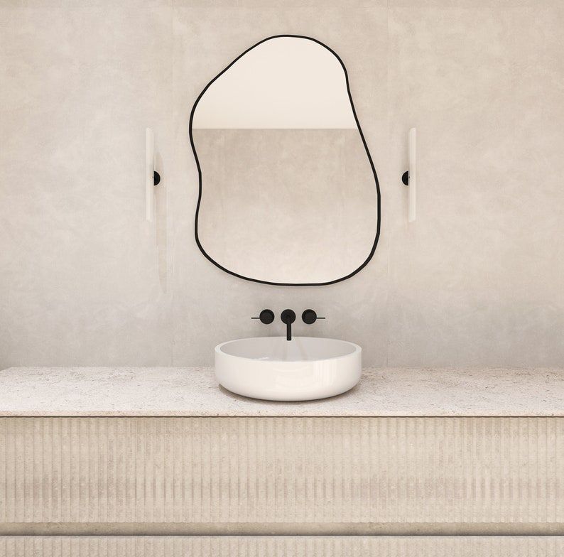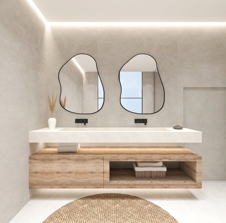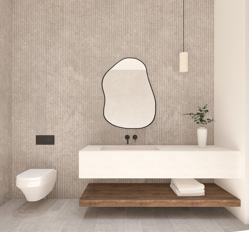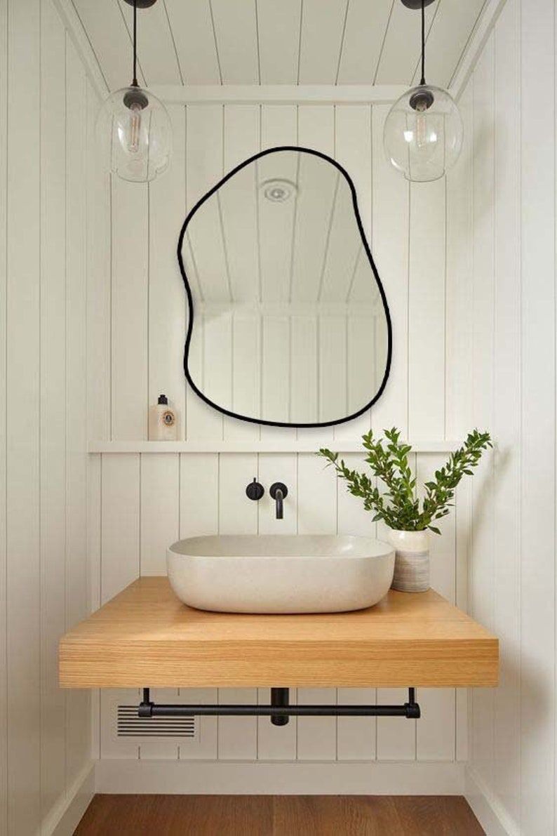 Asymmetrical and Unique Design: This mirror features an asymmetrical design with a slightly curved edge, giving it a modern and stylish look. The irregular shape and unique textures add depth and character to any room.