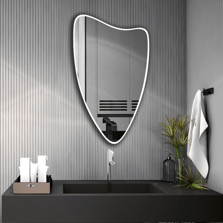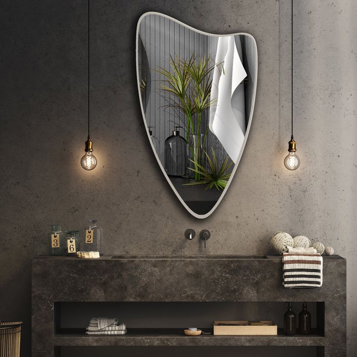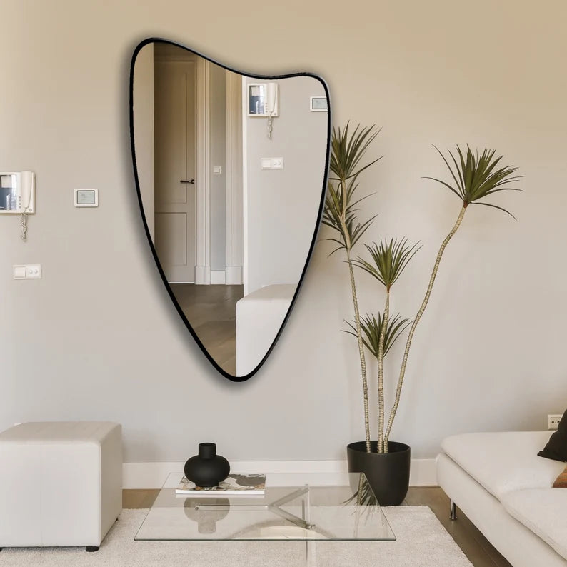 Asymmetrical and Unique Design: This mirror features an asymmetrical design with a slightly curved edge, giving it a modern and stylish look. The irregular shape and unique textures add depth and character to any room.